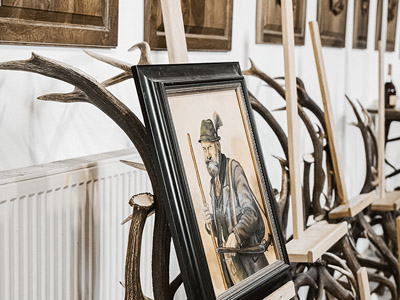 Stojan na obrazy, zasadací poriadok alebo menu. Stojan je zhotovený z prvotriednych jeleních zhodou.