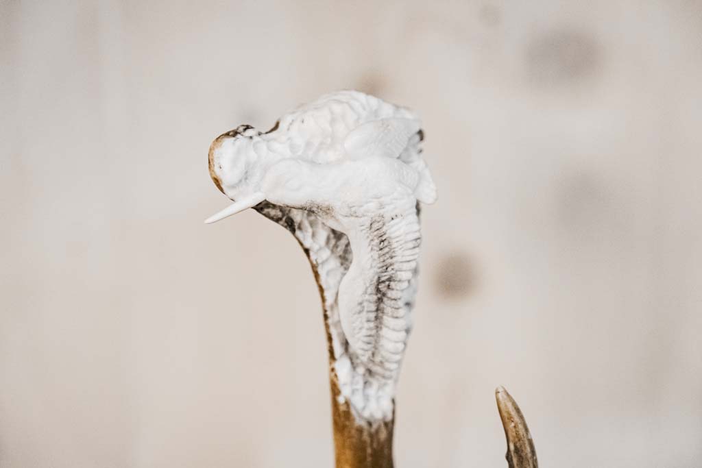 Elegantné pero z parožia s precíznou rezbou sluky, doplnené stojanom z dreva. Každý kúsok je ručne vyrobený originál, vytvorený s láskou k prírode a remeslu. 100% prírodné materiály, ideálne pre milovníkov jedinečného dizajnu a poľovníckej estetiky.