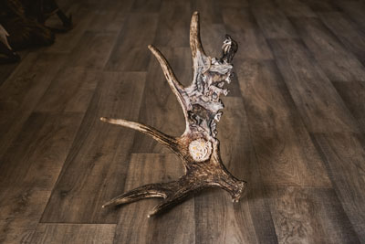 Rezba kamzíkov v losom parohu. Jedná sa o ručnú výrobu, 100% prírodné kvalitné materiály.