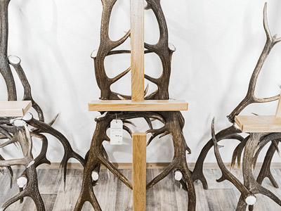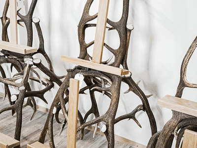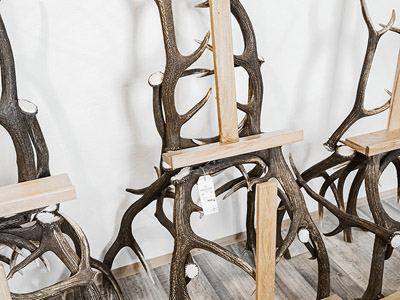 Stojan na obrazy, zasadací poriadok alebo menu. Stojan je zhotovený z prvotriednych jeleních zhodou.