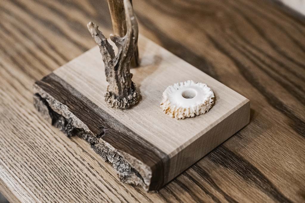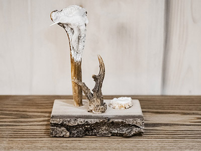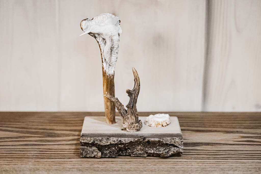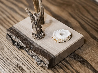 Elegantné pero z parožia s precíznou rezbou sluky, doplnené stojanom z dreva. Každý kúsok je ručne vyrobený originál, vytvorený s láskou k prírode a remeslu. 100% prírodné materiály, ideálne pre milovníkov jedinečného dizajnu a poľovníckej estetiky.