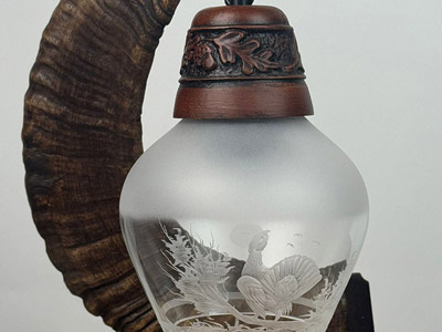 Povýšte svoj interiér na novú úroveň s touto nádhernou poľovníckou stolnou lampou! Svietidlo je zavesené na muflonej tuľajke, ktorá spočíva na drevenej podstave. Jedinečné tienidlo zdobia precízne gravírované poľovnícke motívy, ktoré vytvárajú nezameniteľnú atmosféru.